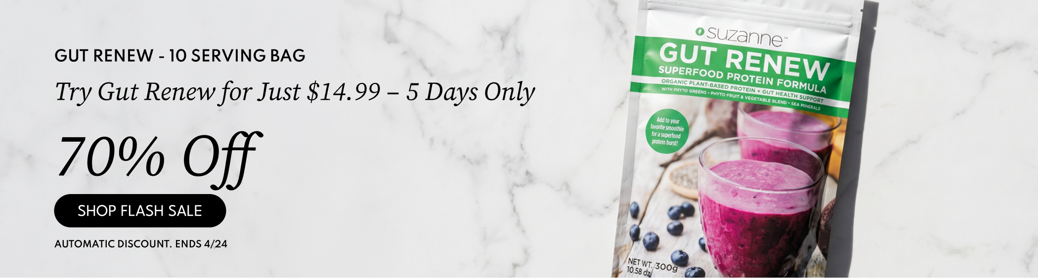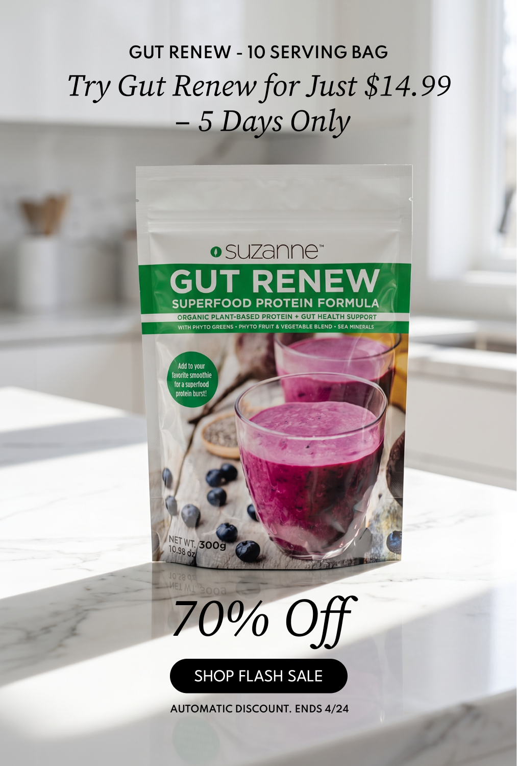 20g plant protein, zero sugar, 50+ nutrients — the gut health formula Suzanne took daily.Regular price From $14.99 USDRegular price$139.99 USDSale price From $14.99 USDSale -